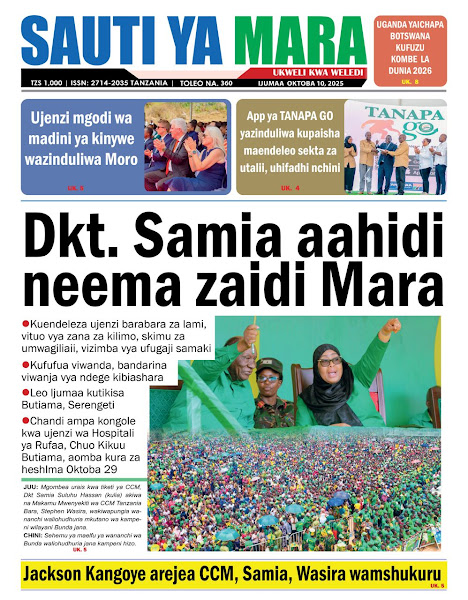 HOME MAGAZETI HABARI KUBWA KWENYE MAGAZETI YA TANZANIA LEO IJUMAA TAREHE 10 OKTOBA, 2025 admin October 10, 2025 Continue Reading Previous: KIBATALA AFUNGUKA MAOMBI YA DHARURA KUHUSU KUTOWEKA KWA HUMPHREY POLEPOLE Leave a Reply Cancel replyYour email address will not be published. Required fields are marked *Comment * Name * Email * Website Save my name, email, and website in this browser for the next time I comment. Δ Related Stories KIBATALA AFUNGUKA MAOMBI YA DHARURA KUHUSU KUTOWEKA KWA HUMPHREY POLEPOLE 1 min read HOME KITAIFA KIBATALA AFUNGUKA MAOMBI YA DHARURA KUHUSU KUTOWEKA KWA HUMPHREY POLEPOLE October 8, 2025 KAKA NA DADA WATUPWA JELA MIKA 30 KWA KUOANA 1 min read HOME KITAIFA KAKA NA DADA WATUPWA JELA MIKA 30 KWA KUOANA October 8, 2025 TANESCO SHINYANGA YAWAKUMBUKA WAGONJWA KATIKA WIKI YA HUDUMA KWA WATEJA 1 min read HOME KITAIFA SHINYANGA TANESCO SHINYANGA YAWAKUMBUKA WAGONJWA KATIKA WIKI YA HUDUMA KWA WATEJA October 8, 2025